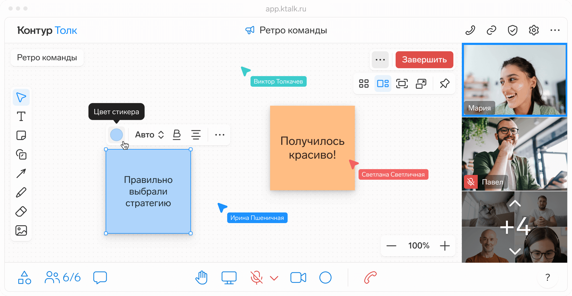 Запускайте электронную доску прямо во время видеосовещания для совместного креатива или отправляйте ссылку коллегам для самостоятельного ознакомления и редактирования в любое время.