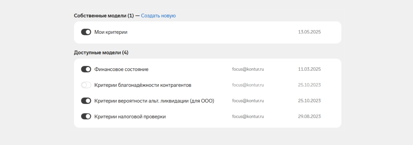 Для того, чтобы включить модель в отчет, проверьте настройки в разделе «Скоринг». Напомним, что Скоринг — это платный модификатор, который докупается дополнительно к действующему тарифу. Чтобы выключить маркеры Скоринга в отчет по регламенту, модификатор должен быть докуплен.