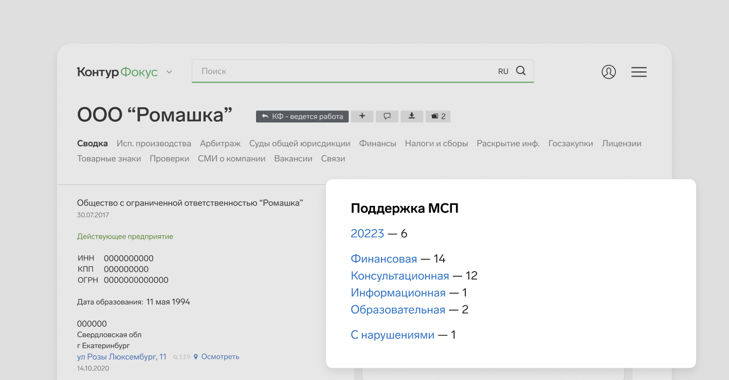 Продуктовый магазин нашел нового поставщика свеклы. Перед сотрудничеством проверил его в Фокусе. В блоке «Поддержка МСП» увидел, что в прошлом году компания брала у фонда поддержки предпринимательства кредит на оборотные средства в размере 1 млн рублей. Нарушений условий получения поддержки при этом не было.