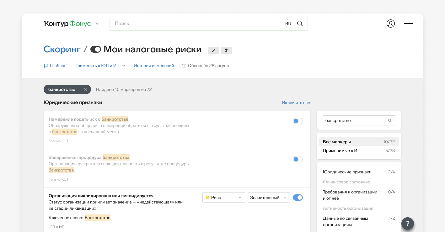 Ознакомиться с другими возможностями Скоринга можно на портале Контур.Помощь.